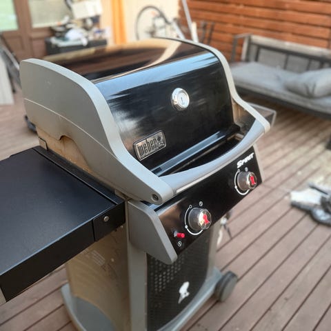 Weber Spirit kaasugrilli. Mukana on Weber-suojapeite. Täysin toimiva ja sisältä ajan patinaa. Vain nouto, en varaa.