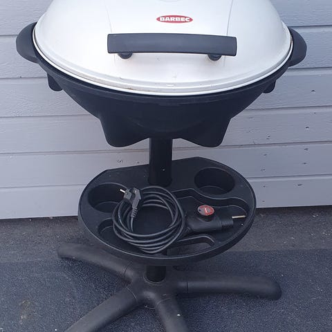 Sähkögrilli jalustalla. Grillissä on kupumainen kansi ja ritiläpaistopinta. Soveltuu parvekkeelle tai terassille, kun käytössä on sähköliitäntä. Jalusta pitää grillin käyttökorkeudella ja kansi auttaa lämmön tasaisessa jakautumisessa. Grillissä on virtajohto ja se toimii verkkovirralla.