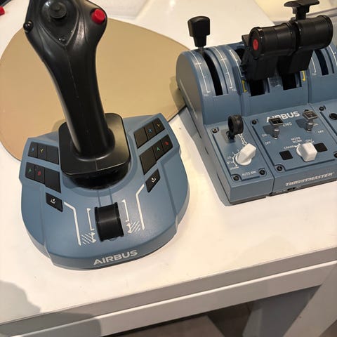 Myyntiin Thrustmaster Airbus throttle quadrant (kaasuvipu), suunniteltu Airbus-tyyliseen lentämiseen.