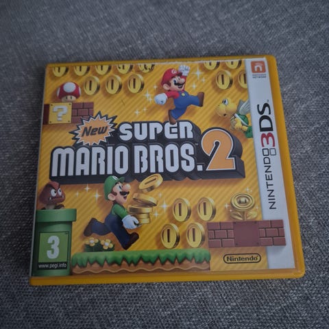 Nintendo New Super Mario Bros. 2 Nintendo 3DS -peli. Pelissä ohjataan Marion ja Luigin seikkailuja tasohyppelykentissä, joissa kerätään kolikoita ja edetään eri maailmojen läpi. Peliformaatti on Nintendo 3DS -kasetti ja peli on tarkoitettu pelattavaksi Nintendo 3DS -käsikonsolilla. Pakkaukseen kuuluu pelikotelo ja pelikasetti, kuvissa näkyvän mukaisesti.