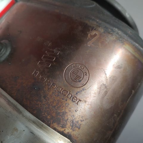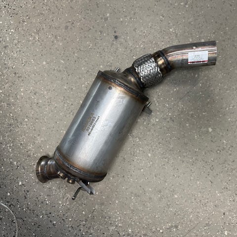 BMW E90/91 330d pakokaasun hiukkassuodatin (DPF). Metallirunkoinen hiukkassuodatin dieselmoottorin pakokaasujärjestelmään.