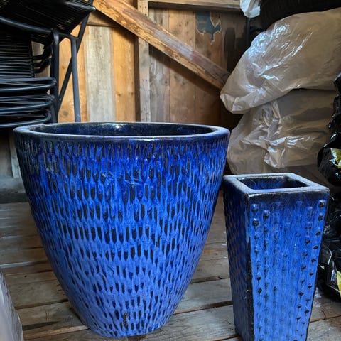Isot Kukka-astiat , 4 kpl . Vanhat mutta ehjät . Materiaali jotain muovisekoitetta . Kork. 46 cm Halk. 65 cm . Näyttävät esim.portinpieleen. Kaikille yhteishinta. 50e