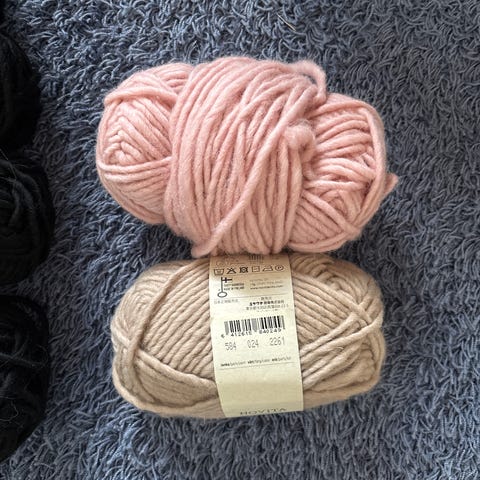 Kaksi kerää Novitan Hygge Wool -lankaa. Toisesta kerästä aloitettu tekemään, mutta purettu pian takaisin kerälle. Yhteensä lankaa siis 200g.