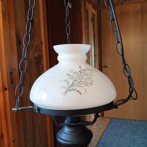 Myydään kuvan kattovalaisin, kupu lasia ja runko metallia. Täysin ehjä ja toimiva. Halkaisija 45 cm ja lasikuvun halkaisija 37 cm.