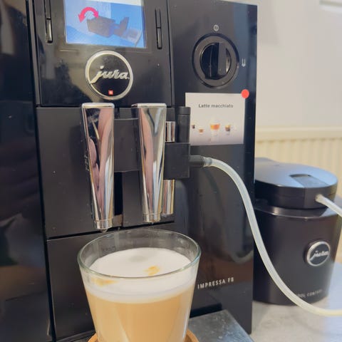 Jura Impressa X -sarjan espressokeitin. Automaattinen kahvikone, jossa on integroidut kahvisuuttimet ja erillinen höyry-/maitosuutin juomien valmistukseen. Laitteessa on tippakaukalo ja ritilä, jotka ovat irrotettavia puhdistusta varten. Sopii espresson ja muiden kahvijuomien valmistukseen kotikäytössä tai pienessä toimistossa. Kuvissa näkyy myös Jura Welcome Pack Impressa X -line -pakkaus, joka sisältää laitteen käyttöön liittyviä tarvikkeita ja ohjeita mallisarjalle.