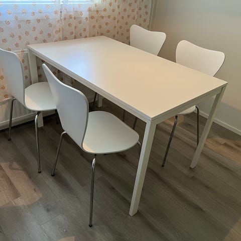 Myydään valkoinen ruokailuryhmä.