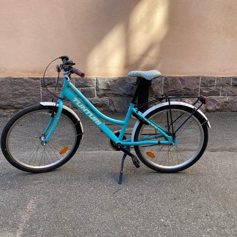 LastenpyöräRenkaat : 24"Rungon koko : n.135-157 cm lapsellePystyputki : 33 cmVaakaputki : 47 cm7 vaihdettaKäsi- ja jalkajarru, edessä levyjarruJoustokeulaHyvin pientä kulumaa/käytönjälkiäEi lukkoa8 syytä ostaa kierrätyspyörä verkkokaupastammeEkologinen valinta - säästät lähes 400 kiloa luontoaHuollettu ja pesty Kierrätyskeskuksen verstaallaVaraosat aina laadukkaita ja ensisijaisesti käytettyjäKoeajettu ja turvalliseksi varmistettuKuukauden palautusoikeusEdullinen hankinta - säästät rahaaHuolto ja korjaus luo työpaikkojaMaksuton toimitus ja palautus myymälöihin