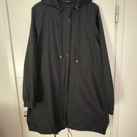 Marimekko Hortensia naisten takki, koko XL, väri musta. Takissa on nappi- ja vetoketjukiinnitys. Päällikangas on kevyttä materiaalia, ja sisäpuolella on verkkovuori. Malli on väljä ja pituudeltaan reiteen ulottuva. Sopii arkitakiksi ja ulkoiluun vaihteleviin sääolosuhteisiin.