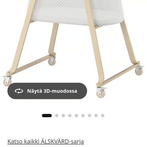 Kaunis, ruskeaksi petsattu vauvan kehto. Sopiva vastasyntyneestä noin 7-8 kk ikään asti.