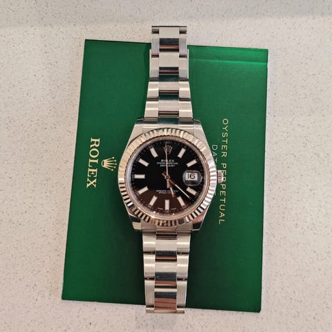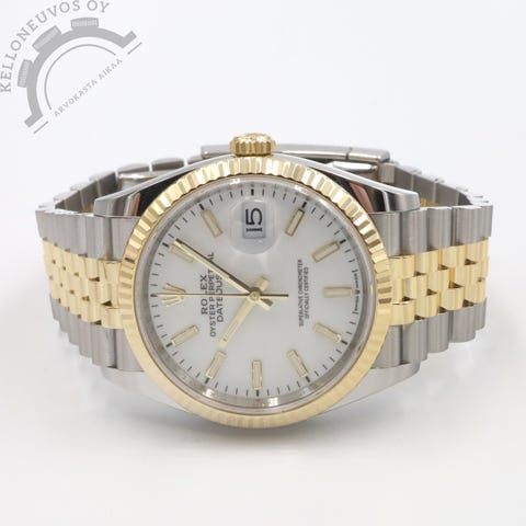 Tarjolle tyylikäs Rolex Datejust 41. Selkeälukuisella harmaalla aurinkohiotulla taululla jossa päivyri. Teräksinen kuori yhdistettynä laadukkaaseen teräsrannekkeeseen jossa keskipalat kiillotettua ja sivut harjattua terästä kruunaavat kokonaisuuden. Koneistona toimii Rolex 3235- automaattikaliiperi jossa 70h käyntivara. Full set, kellon takuukortti on päivätty 3/2021.
