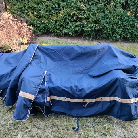 Käytettynä ostettu 200g violetti Fairfield talviloimi. Lapussa koko 135cm, mutta aika reilun kokoinen mielestäni. Irrotettava kaulakappale.