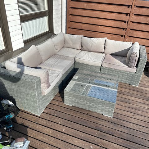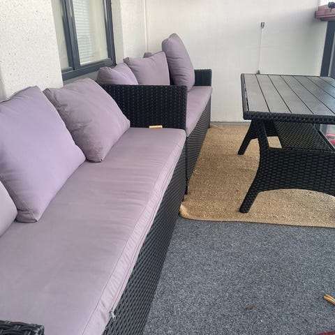 Myydään erittäin siisti ja kaunis polyrottinkinen terassisohvaryhmä ihanassa ruskeanharmaan sävyssä.
