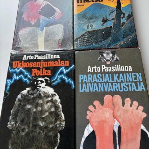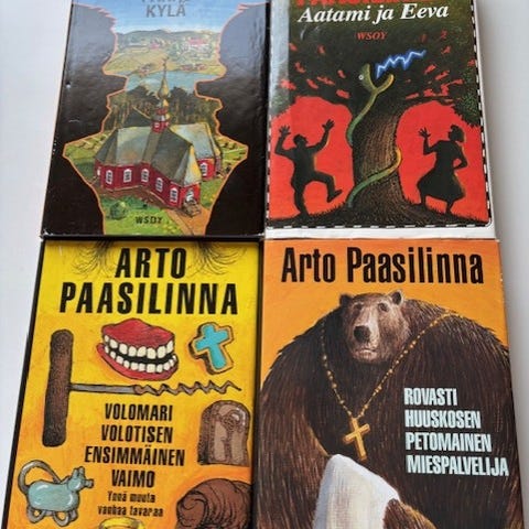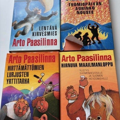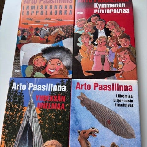 Arto Paasilinna romaanit, useita teoksia samalta kirjailijalta. Kovakantisia kirjoja, suomenkielisiä romaaneja. Sopii lukijalle, joka etsii kotimaista kaunokirjallisuutta ja haluaa useamman teoksen samassa erässä.