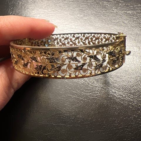 Myydään upea kahden vintage-rintakorun setti, joka koostuu kahdesta erikokoisesta ja taidokkaasti valmistetusta perhosesta. Molemmat korut on tehty perinteisellä filigraanitekniikalla, jossa ohuesta hopealangasta on punottu pitsimäisen kevyitä ja symmetrisiä kuvioita. Korujen pinnassa on kaunis ja lämmin kultaus (gold wash), joka on säilynyt molemmissa yksilöissä ikäänsä nähden erinomaisesti.