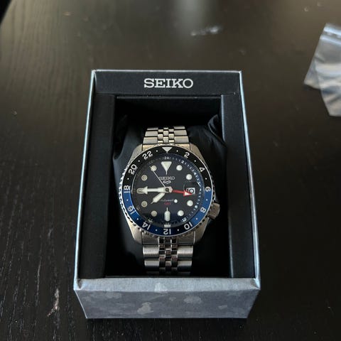 Tyylikäs Seikon automaatti kello 41h käntivaralla. Kellossa on 3v takuu joka on alkanut 30.7.2025 kellon alkuperäisen teräs rannekkeen lisäksi kauppaan kuuluu Seikon alkuperäinen natoranneke. Kello on full set eli kaikki löytyy mitä uutena tullut. Jos olet kiinnostunut kello telineestä niin se on myös myytävänä.