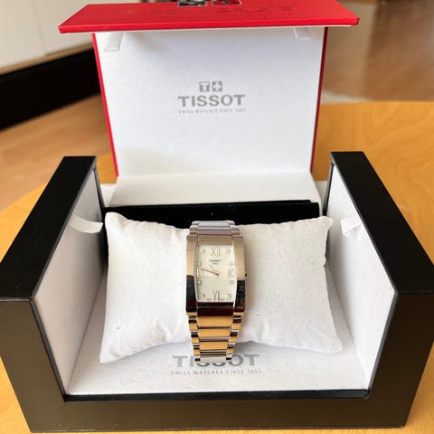 Tissot - T101.210.33.031.01Kotelo: ruostumaton teräs roosa kultauksellaKellomekanismi: Swiss made quartzKellotaulu: hopeinenLeveys: 33 mm (kroonin pois lukien)Lasi: safiirilasiRanneke: alkuperäinen kultauksin varustettu teräsrannekeRanteen ympäry: n. 18 cmKunto: Uudenveroisessa kunnossa!Takuu: 1 vuosi "de Horlogemeesters"Toimitus: alkuperäisessä laatikossa + aitoussertifikaatti "de Horlogemeesters"Akickiretut ja vakuutettu toimitus (DHL-express).
