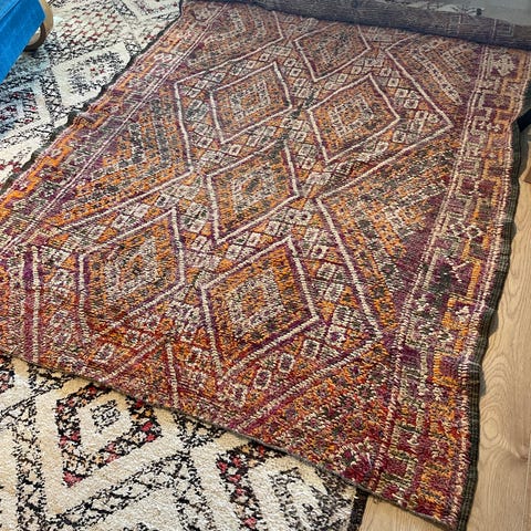 Marokkolainen matto, jossa vaalea pohjaväri ja monivärinen kuviointi. Sopii käytettäväksi esimerkiksi olohuoneessa tai makuuhuoneessa. Materiaali Villa Matto voidaan asettaa lattialle tai käyttää myös sisustuselementtinä seinällä haku Turku /postitus