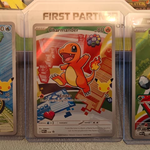 Myydään kuvan mukaiset First Partner Collection Boxin Pokemon kortit (3korttia). Kanto gen 1 laitettu pakasta sleeveihin heti. Setti sisältää bulbasaur, squirtle ja charmander