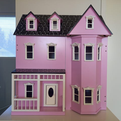 Myydään nukkekoti. Vaaleanpunainen. Osa kalusteista liimattu kiinni. Kunto hyvä.