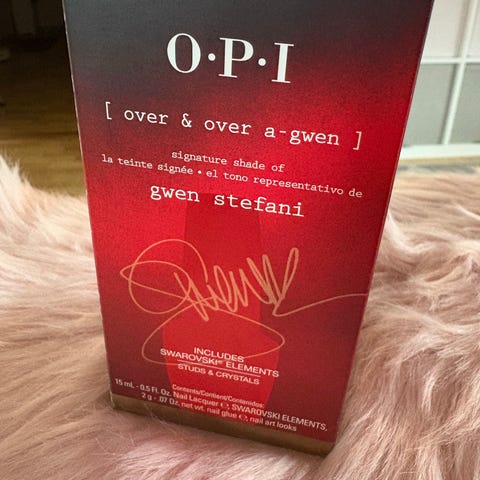 OPI Hello Kitty -kynsilakka punaisessa sävyssä. Pakkauksessa on Hello Kitty -teemainen kynsilakka, jossa on valkoinen korkki Hello Kitty -kuvioilla. Kynsilakka on nestemäinen ja tarkoitettu luonnonkynsille. Valmistettu Yhdysvalloissa. Sarja on Hello Kitty by OPI -yhteistyömallistoa.