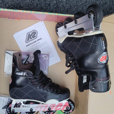 K2 Cadence rullaluistimet miesten mallia, mutta olleet käytössä naisella. Lesti sopii maiselle mainiosti. Koko 40,5 / kengän sisämitta 26cm. Pehmustettu varsi ja sisäkenkä.