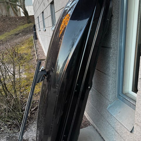 Packline kattoboksi. Väri harmaa/musta. Boksi kiinnitetään auton kattotelineisiin, ja se soveltuu esimerkiksi matkatavaroiden ja varusteiden kuljettamiseen. Sisällä on kiinnityshihnoja tai -koukkuja kuorman sitomista varten. Kansi avautuu ylhäältä, ja boksi on suunniteltu kestomuovista tai vastaavasta kovasta materiaalista tavanomaiseen autokäyttöön. Kaikki lukko on toimi, 2 avaimet