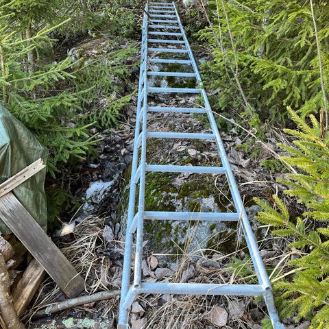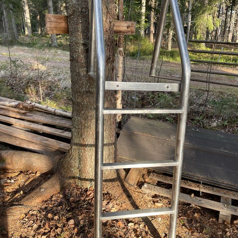 Sinkitty runko, kestopuu askelmat just käsitelty. Taitaa olla mallia motonet...
