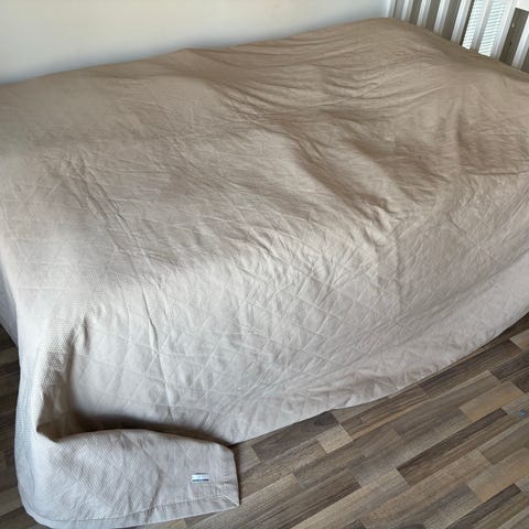 Luhta Homen tummanharmaa kiiltäväpintainen peitto. Sopii 180cm leveään sänkyynkin. Koko 270×265. Siisti ja ehjä. Kääntöpuolellakaan ei nukkaa.