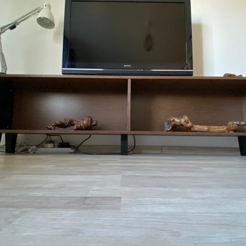 Ollut aiemmin tv-tasona, sen jälkeen parvekkeella kukkatasona ja säilytykseen. Senkin päällä on halkeama, mutta se ei ole rikki. Sijaitsee Kruunuvuorenrannassa, nopein nouto etusijalla. Painon perusteella on täyspuuta.