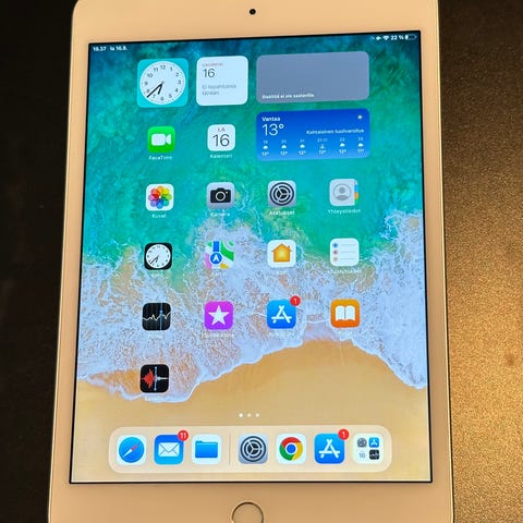 Apple iPad mini tabletti, tallennustila 128 GB. Sim kortti paikka. Wifissä oli joku häiriö mutta korjaantui nollauksessa myyntiä varten.