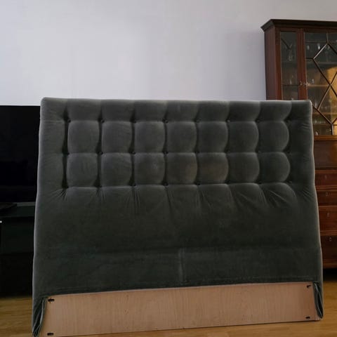 Varattu. Myydään tummanharmaa sametti sängynpääty 160cm sänkyyn.
