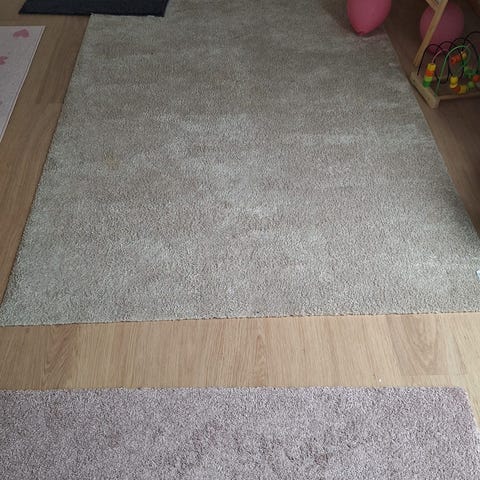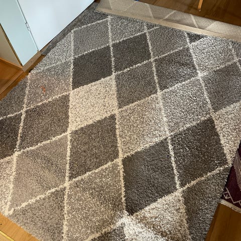 Helppohoitoinen matto. Matto on imuroitu, mutta tarkempi imurointi jää hakijalle, Leveys noin 160-165. Pituus n 220.