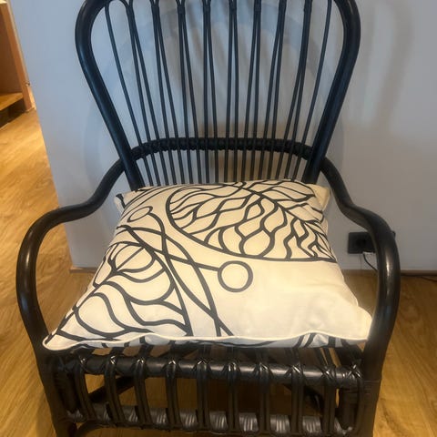 Erittäin hyvässä kunnossa oleva ruskea rottinkituoli.