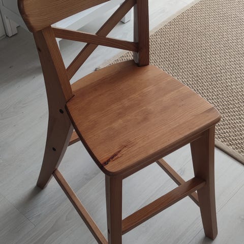Hyvin siistissä kunnossa, ainoa moite on pieni jälki selkänojassa, näkyy viimeisessä kuvassa.