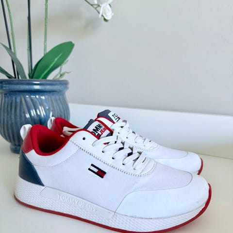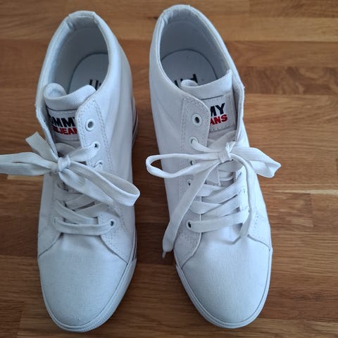 Tommy Hilfigerin valkoiset tennarit, koko 39. Paristi käytetty ja todettu itselle liian suuriksi. Koirakoti.