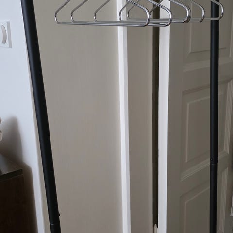 Myydään kuvassa näkyvä valkoinen vaateteline. Kevyt. Vain nouto. Lähellä Pasilan asemaa.