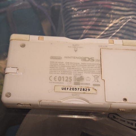 Nintendo DS Lite käsikonsoli, väri valkoinen. Pakettiin sisältyy laturi, kaksi kosketuskynää sekä 5 peliä. Konsolissa on kaksi näyttöä, joista alempi on kosketusnäyttö. Laitteessa on myös paikka Nintendo Gameboy Advance pelikaseteille.
