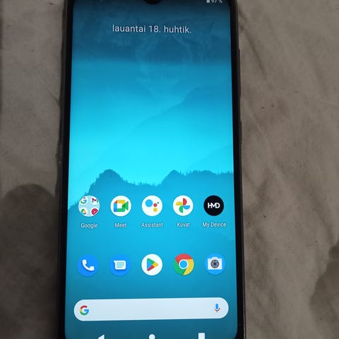 Sim-paikka rikki ja kelkka puuttuu, muuten toimiva, nahkakotelo mukaan