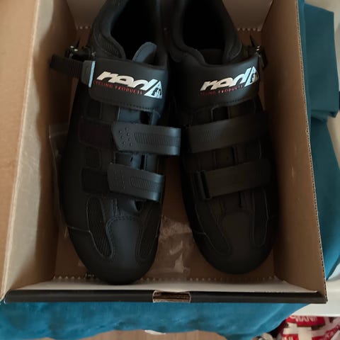 Sidi maastopyöräilykengät, koko 45,5 Väri musta, pohjassa vaalea kulutuspinta ja nastamaiset kumiosat kävelyä varten. Kengissä on kolmen hihnan kiinnitysjärjestelmä, jossa yksi solkikiristys ja kaksi tarranauhaa. Pohjassa on maastopyöräilyyn sopiva klossikiinnitys (SPD-tyyppinen 2-pulttinen). Soveltuvat maastopyöräilyyn ja muuhun poljinlukolliseen pyöräilyyn, jossa käytetään 2-pulttisia klosseja.