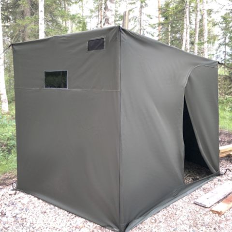 Mahdollista ostaa mukaan myös lämpölattia (eristetty) kylmän ajan käyttöä varten sekä ylimääräinen sadesuoja. Kiuaskin löytyy mukaan. Hinta pelkälle teltalle. Hinta uutena 1199e, mutta näitä ei oikein saa mistään.