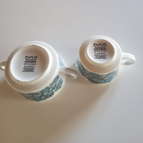 Hyvässä kunnossa oleva Arabian valkoinen kastikekaadin.