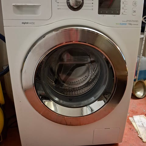 Samsung edestä täytettävä pesukone. Valkoinen, EcoBubble malli, jossa etuluukku ja digitaalinen näyttöpaneeli. Pesukone ollut todella vähällä käytöllä ,joten on hyvässä kunnossa ja energia ystävällinen. Myydään pois koska ei mahdu kylpyhuoneeseen.