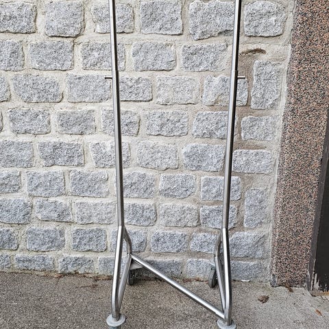 Hyvässä kunnossa erittäin tukeva ja hyvä metalli rekki. Saa lisättyä pituutta 45cm.