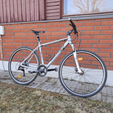Pyörä ollut mökkipyöränä.Linnut hakkasi satulaa viime syksynä ja sitten satoi vettä joka imeytyi satulantäytteisiin poissaollessa.Pakkanen venytti hieman lisää.