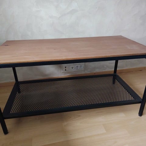 Musta pöytätaso ja metalliset jalat. Irrallaan.