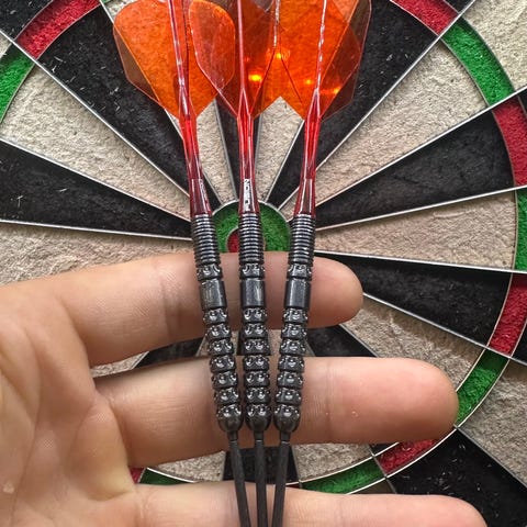 Target Star Wars TIE Fighter darts 23 g. Tikoilla vain testiheitot heitetty ja ei sopinu itselle. Alkuperäiset kärjet yms käyttämättömät.