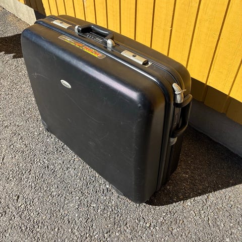 Matkakaukun mitat leveys 30 cm ja korkeus 60 cm. Tunnusluvullinen lukitus.