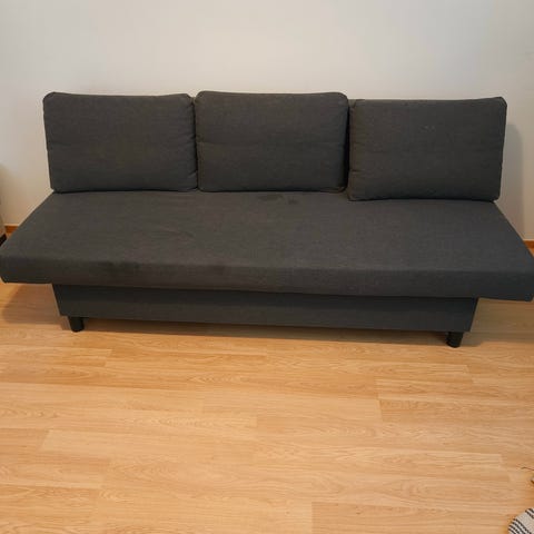 Vuoden käytössä ollut vuodesohva. Ovh 2000€. Sohvassa jouset, joten oikein mukava nukkuessakin. Vuoteen leveys vähän yli 140 cm. Istuin korkeus 45 cm ja syvyys 60 cm. Lyhyempi osa sohvaa 2 m ja pidempi 2,5 m. Kankaassa hieman nukkaa, jonka saa varmasti helposti pois nukkakoneella!