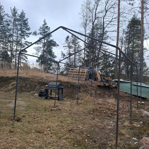 Pressu hallin metalliset putket pressua ei ole kun niin hauras piti heittää pois.. ostaja purkaa saa tikkaita lainata.