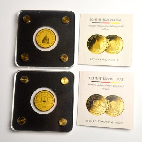 999 puhdasta kultaa1/200 ozHuomaa, että tässä erässä on pieniä kultakolikoita tai -mitalia, jotka on valmistettu erittäin ohuesta kultasta. Näiden herkästi taipuvan ja hauraslaisen vuoksi tällaiset esineet ovat usein kiinnitettyinä akryyliin tai kapseloituina muoviin vaurioitumisen estämiseksi. Jos teillä on kysyttävää tästä erästä, olkaa hyvä ja ottakaa meihin yhteyttä.Katso kuvat oikean vaikutelman saavuttamiseksi.Esine lähetetään rekisteröidyllä kirjeellä seurantaluvulla.